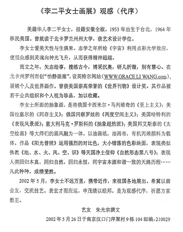 Solo Exhibits of "The Art of Grace Li Wang" in China